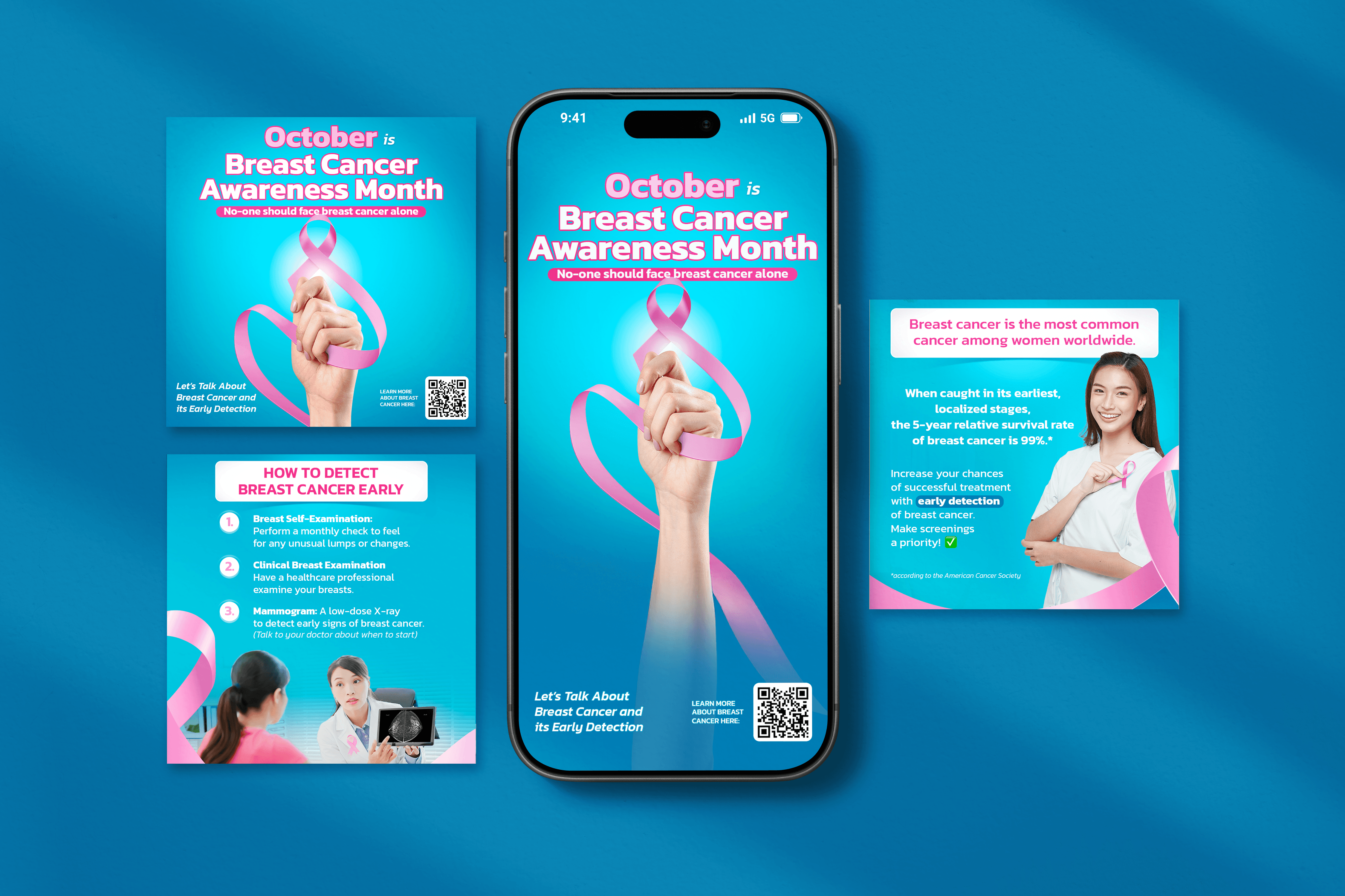The project focuses on communicating the strategic collaboration between IHC (RS Pusat Pertamina) and the global medical leader, Mayo Clinic Care Network. The objective was to translate complex medical updates, doctor profiles, and health awareness campaigns (such as the Breast Cancer Awareness month shown in the mockups) into accessible, visually engaging social media content that maintains the prestige and integrity of both brands.